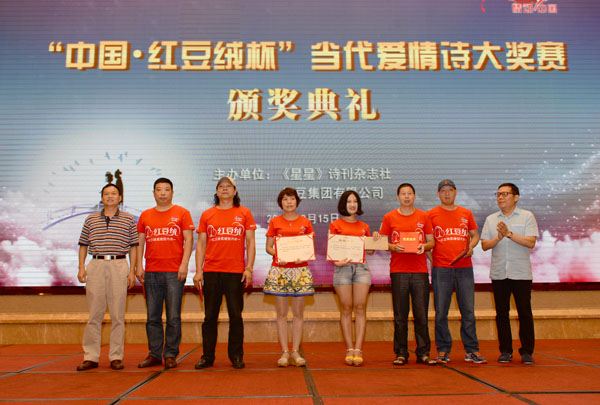 8月15日,備受關(guān)注的“中國?紅豆絨杯”當(dāng)代愛情詩大獎(jiǎng)賽各項(xiàng)獎(jiǎng)在無錫紅豆杉莊正式揭曉,來自湖南長沙的宋志剛以組詩《紅豆,那顆磅礴的心跳》在4.62萬首投稿詩作中脫穎而出,獲得特等獎(jiǎng)。