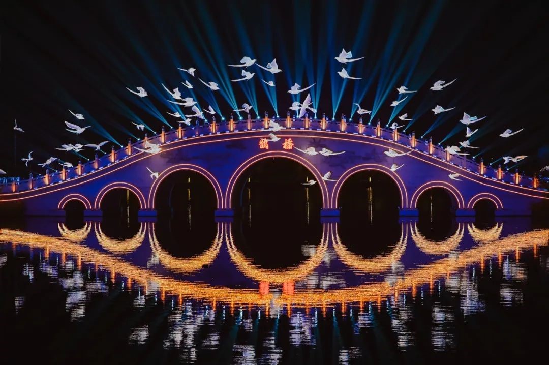 ? ? ? ? 作為七夕文化的重要起源地,昆明池和仙女湖多次獲得央視&紅豆七夕特別節目的垂青。“一片昆明池,千秋織女名”,漢武帝在昆明池兩岸豎起的織女石像和牛郎石像,令昆明池以“人間天河”聞名于世。而一段美麗浪漫的仙俗奇緣傳說則令仙女湖的“仙”文化深入人心。不僅如此,兩地受到良好保護的生態環境,秀美的綠水青山,優越的自然風光,也為七夕晚會的舉辦提供了得天得厚的條件。
