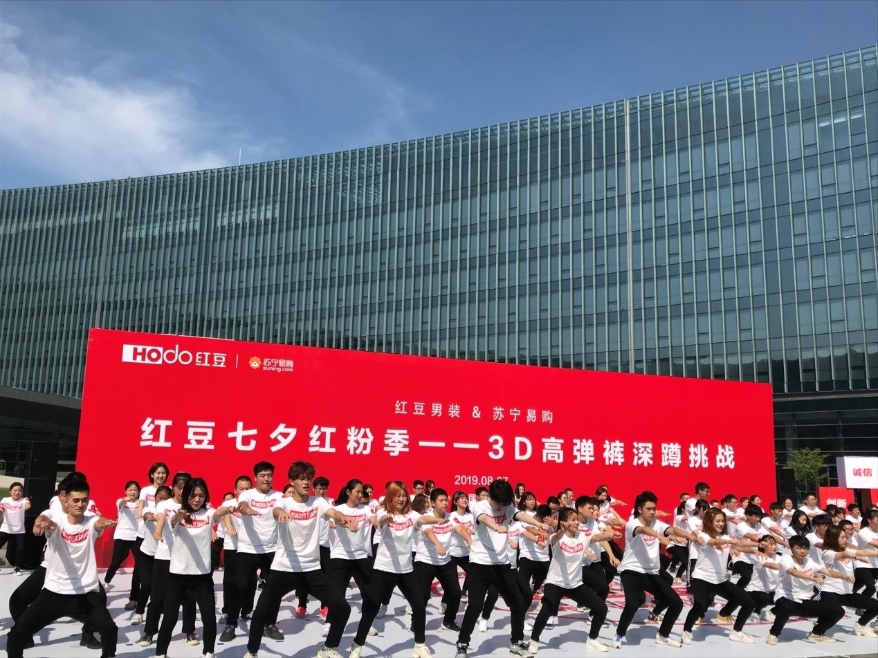? ? ? ? 8月7日紅豆走進蘇寧,一場盛大的第三代紅豆3D高彈褲新品首發儀式在南京蘇寧總部啟動,紅豆與蘇寧強強聯手,在七夕當天聯袂獻上這份七夕大禮。